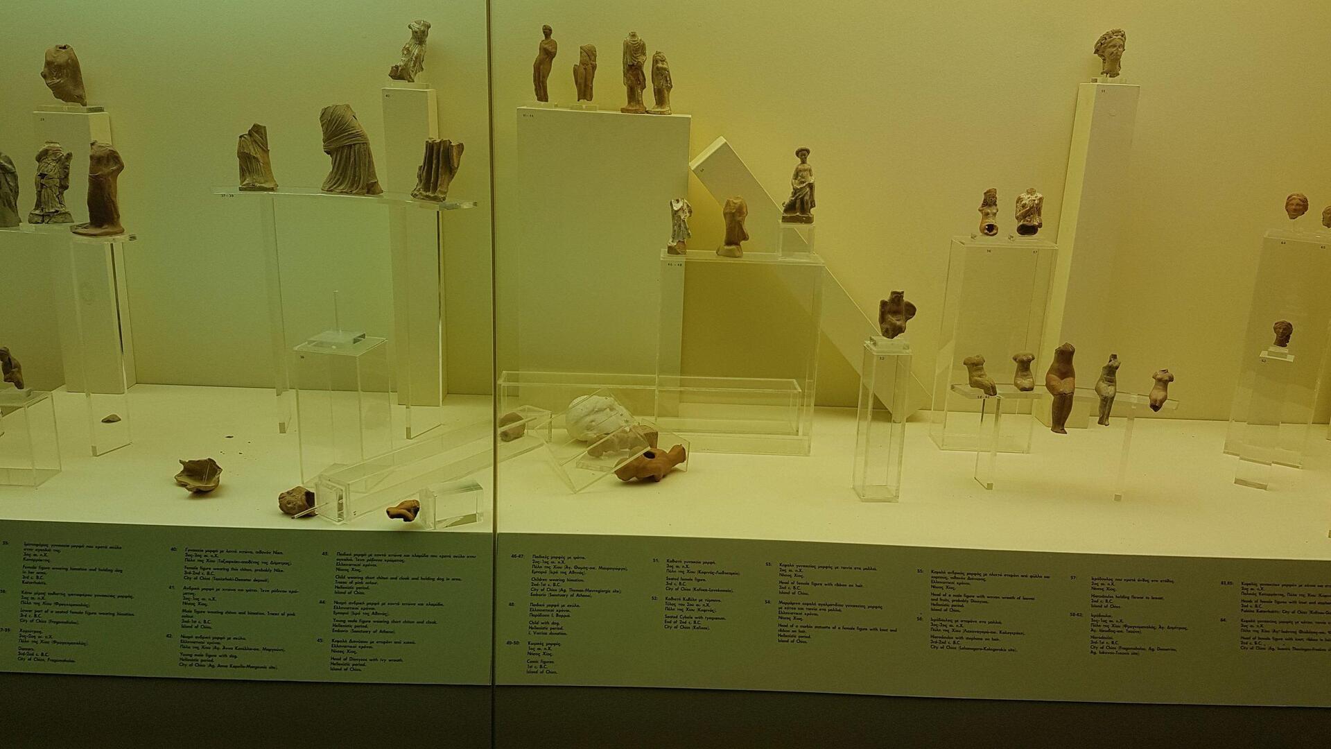 Στην Χίο, στο Αρχαιολογικό Μουσείο έπεσαν κάποια μικρά εκθέματα μέσα στις προθήκες στην αίθουσα της κοροπλαστικής, και λίγα κεραμικά στην αίθουσα των αρχαϊκών κεραμικών.