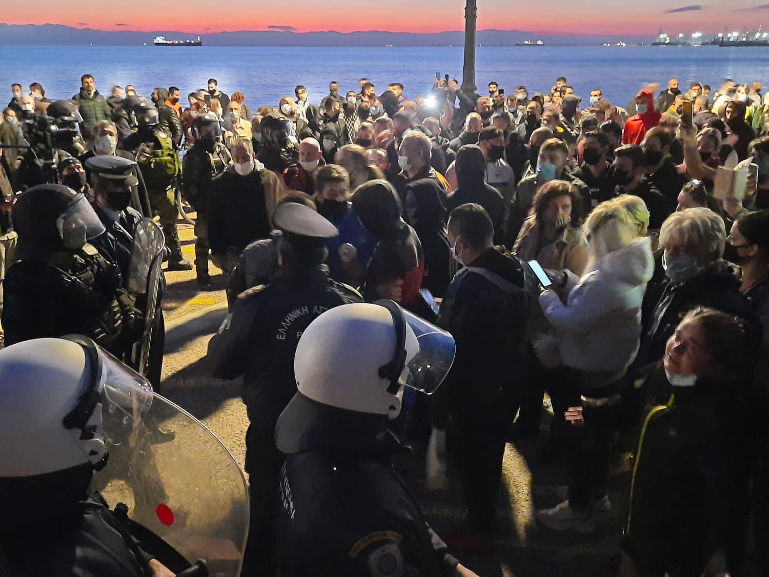 Τα άτομα συγκεντρώθηκαν κοντά στον Λευκό Πύργο, μέσω διαδικτυακού καλέσματος, προκειμένου να διαμαρτυρηθούν για την επιβολή lockdown.