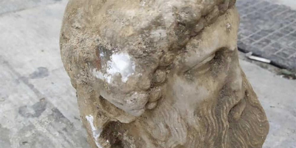 «Βρέθηκε μόλις ενάμιση μέτρο κάτω από τη γη, κατά τις εργασίες αναβάθμισης υποδομών στην οδό Αιόλου, επί της Πλατείας Αγίας Ειρήνης. Ήδη βρίσκεται στην ευθύνη της Εφορίας Αρχαιοτήτων.