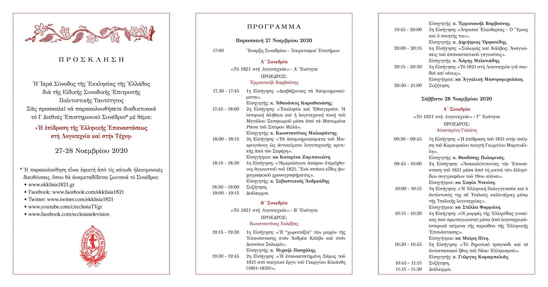 Η παρακολούθηση του Συνεδρίου θα είναι εφικτή μέσω ζωντανής αναμεταδόσεως από την ειδική ιστοσελίδα της Επιτροπής για τον εορτασμό των 200 ετών από το 1821 www.ekklisia1821.gr, καθώς και από τους ακόλουθους λογαριασμούς μέσων κοινωνικής δικτύωσης: