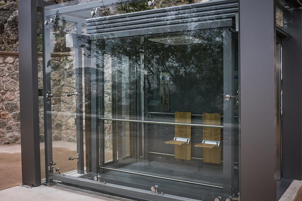 Το Υπουργείο Πολιτισμού έδωσε τις αναγκαίες προδιαγραφές για την κατασκευή του ανελκυστήρα βάσει της τοπογραφίας της περιοχής και των γεωτεχνικών δεδομένων. Έχει χωρητικότητα 1.300 κιλά ωφέλιμο φορτίο, ήτοι 2 αμαξίδια με 2 συνοδούς ή 1 φορείου ασθενοφόρου με 1 συνοδό.