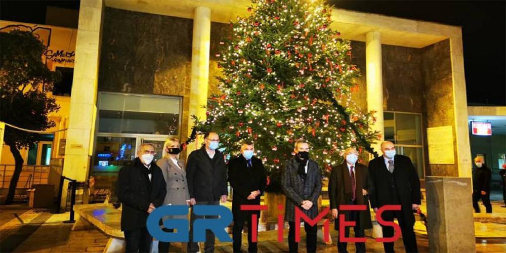 «Φέτος έχουμε ένα διαφορετικό άναμμα δέντρου. Βρισκόμαστε στο νοσοκομείο ΑΧΕΠΑ, σε ένα κεντρικό νοσοκομείο της πόλης μας που από τη πρώτη στιγμή της πανδημίας βρίσκεται στην πρώτη γραμμή αντιμετώπισης του κορωνοϊού. Ήρθαμε εδώ για να δώσουμε χαρά και ανάσα στους συμπολίτες μας.