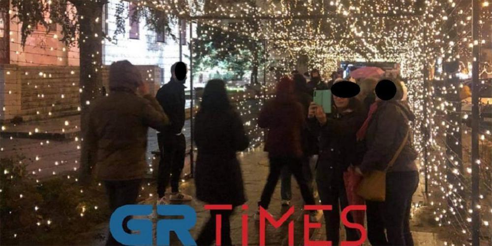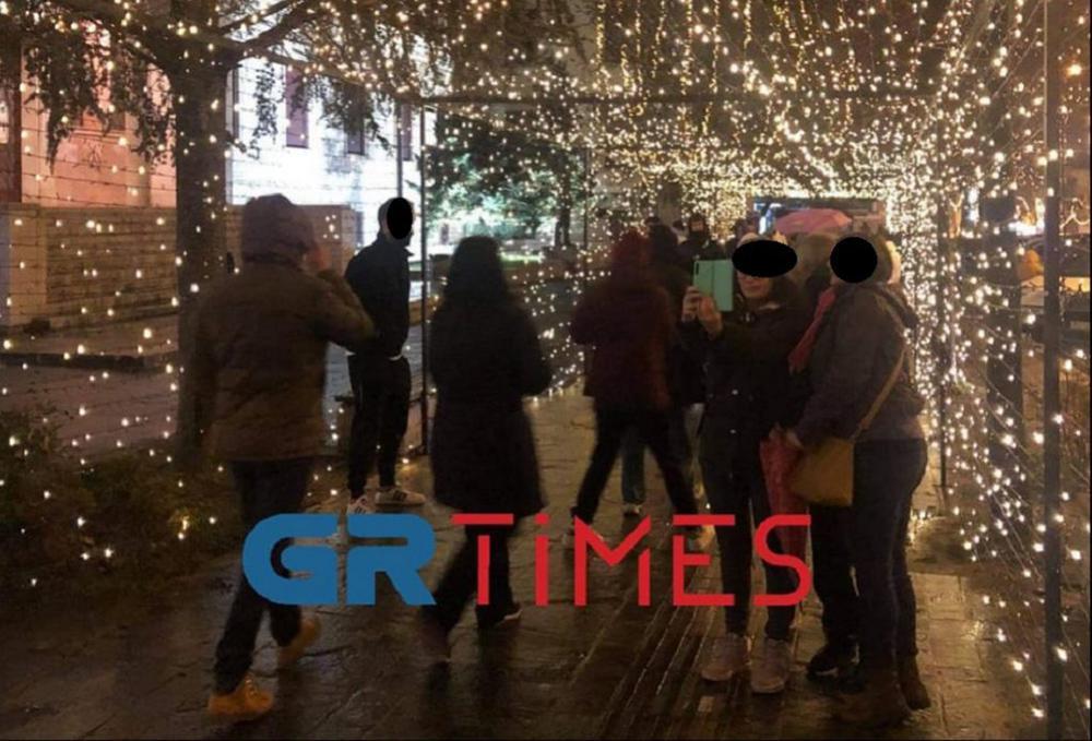Συγκεκριμένα δεκάδες πολίτες παρά τη βροχή και τις κακές καιρικές συνθήκες σταματούσαν έξω από το κτίριο για να φωτογραφίσουν τον χριστουγεννιάτικο στολισμό χωρίς να κρατούν τις αποστάσεις για την αποφυγή της διασποράς του κορωνοϊού.