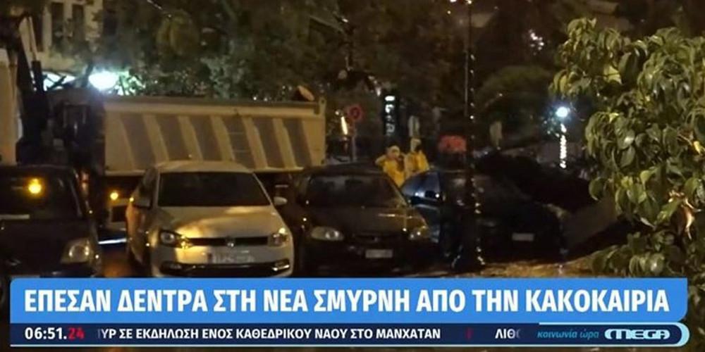 Άντρες της πυροσβεστικής έκοψαν το δέντρο σε κομμάτια και οχήματα του δήμου τα περισυνέλλεξαν προκειμένου να ανοίξει ο δρόμος.
