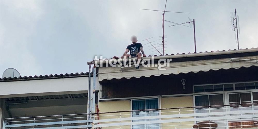 Ο 25χρονος έχει ανεβεί στη άκρη στέγης πολυκατοικίας, στην οδό Σαχίνη και απειλεί ότι θα βουτήξει στο κενό.