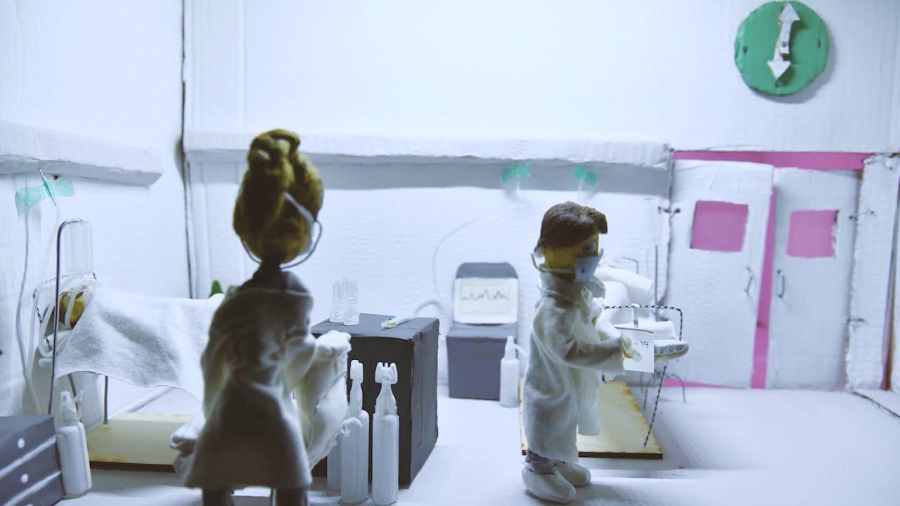 Ο Νίκος Συράκης και η Μαρία Ορφανού κατασκεύασαν σε ένα χαρτόκουτο, ένα μίνι στούντιο, δημιουργώντας το σκηνικό ενός νοσοκομείου.