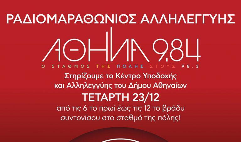 Την Τετάρτη, από τις 6 το πρωί μέχρι τα μεσάνυχτα, ο «Αθήνα 9. 84» αλλάζει όλο του το πρόγραμμα! Από τα μικρόφωνα του σταθμού θα ακουστούν πολιτικοί, άνθρωποι των γραμμάτων και των τεχνών, αθλητές, συλλογικότητες, εθελοντές που πρωταγωνιστούν στις δράσεις αλληλεγγύης αλλά και εκπρόσωποι δημοτικών παρατάξεων που θα δηλώσουν παρόν σε αυτή την ραδιοφωνική πρωτοβουλία του σταθμού της πόλης.