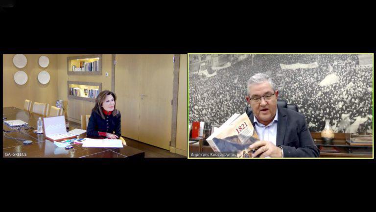 Μιλώντας για το επετειακό πρόγραμμα, τόνισε ότι είναι ένα πρόγραμμα που τιμά την ιστορία και, την ίδια στιγμή, ανοίγει ένα παράθυρο στο μέλλον, κάτι που αποτέλεσε εξαρχής κεντρική επιδίωξη της Επιτροπής. Ακόμη, ενημέρωσε τους Αρχηγούς για τις εμβληματικές δράσεις που, πέραν του συντονιστικού της ρόλου, θα αναλάβει να υλοποιήσει αυτόνομα η ίδια Επιτροπή, με αφορμή την επέτειο.