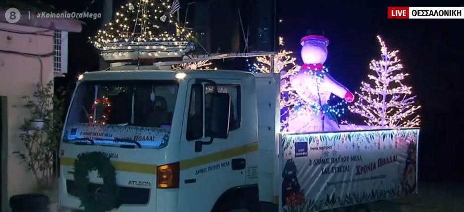 Ένα φορτηγάκι κυκλοφορεί στους δρόμους της πόλης παίζοντας κάλαντα από τα μεγάφωνα και μεταδίδοντας το πνεύμα των Χριστουγέννων.