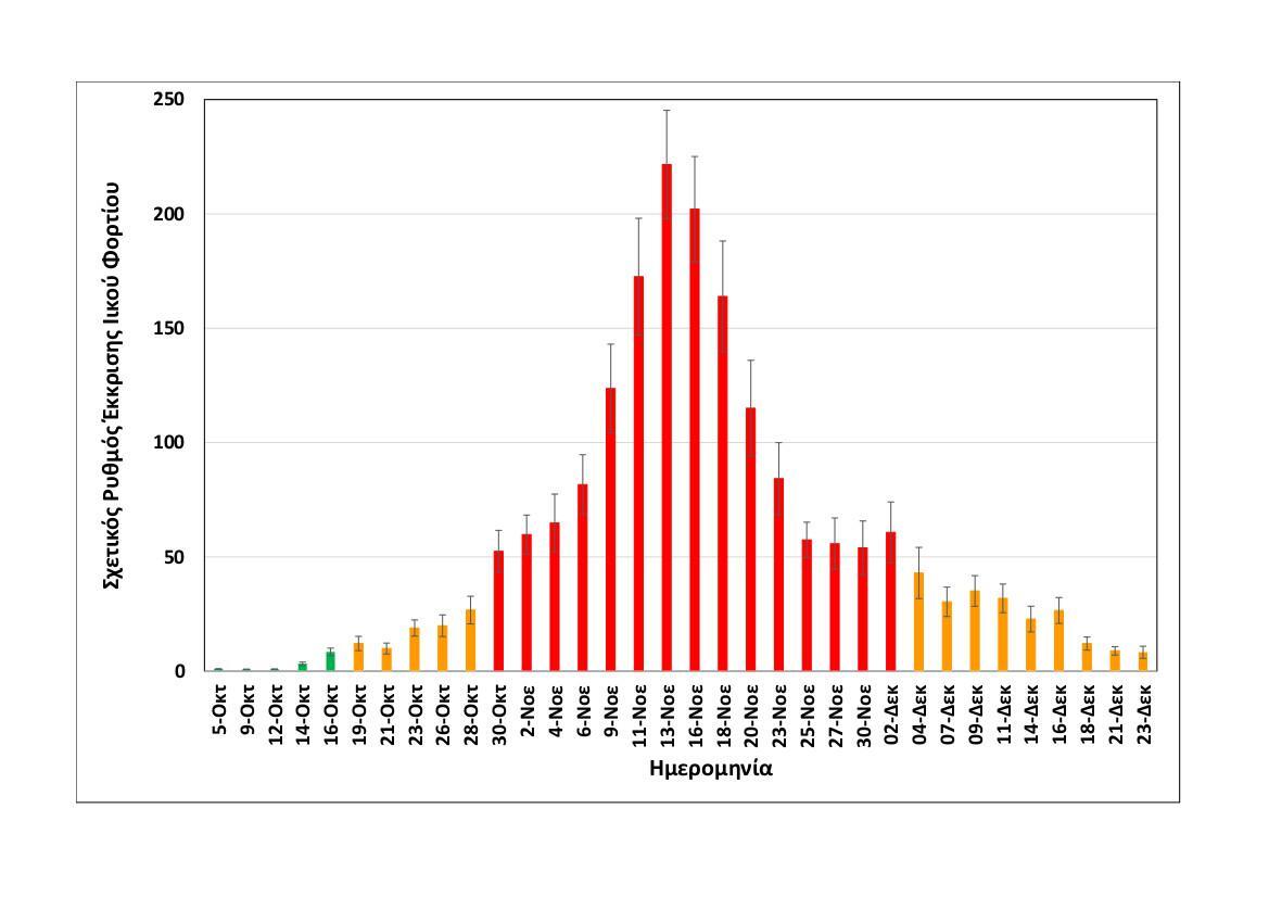 Ο εξορθολογισμός της τελευταίας μέτρησης, που ολοκληρώθηκε ανήμερα των Χριστουγέννων, επιβεβαιώνει ότι μετά από μία εβδομάδα, όπου το ιικό φορτίο είχε παραμείνει σε σταθερά επίπεδα, η αποκλιμάκωση από τις 18 Δεκεμβρίου και μετά συνεχίζεται με ταχύτερο ρυθμό.