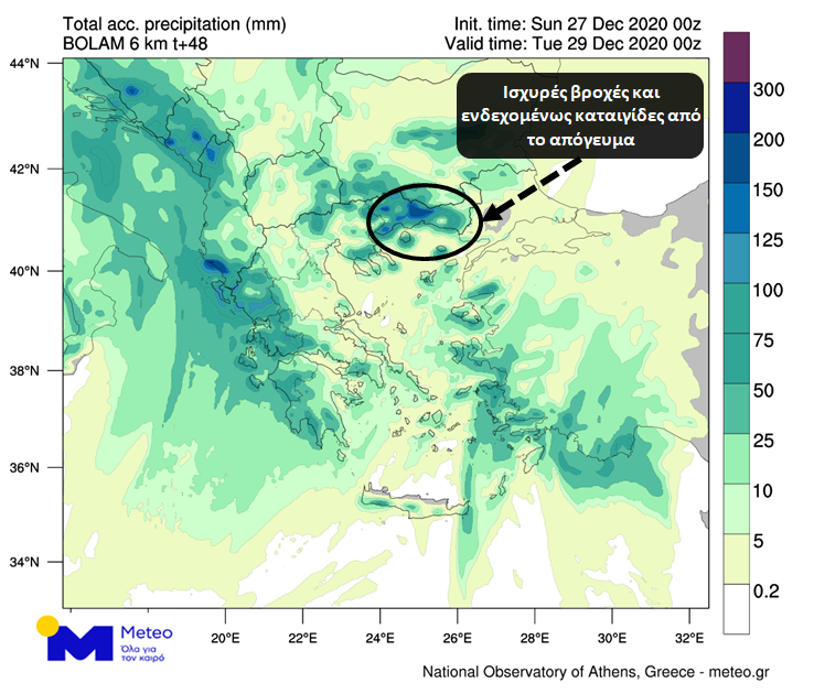 Τα φαινόμενα προς το τέλος του εικοσιτετραώρου θα περιορισθούν στην Ανατολική Μακεδονία και Θράκη, στο Ανατολικό και Νότιο Αιγαίο και στα δυτικά, όπου και θα παρουσιάσουν σταδιακή εξασθένηση έως το πρωί της Δευτέρας.