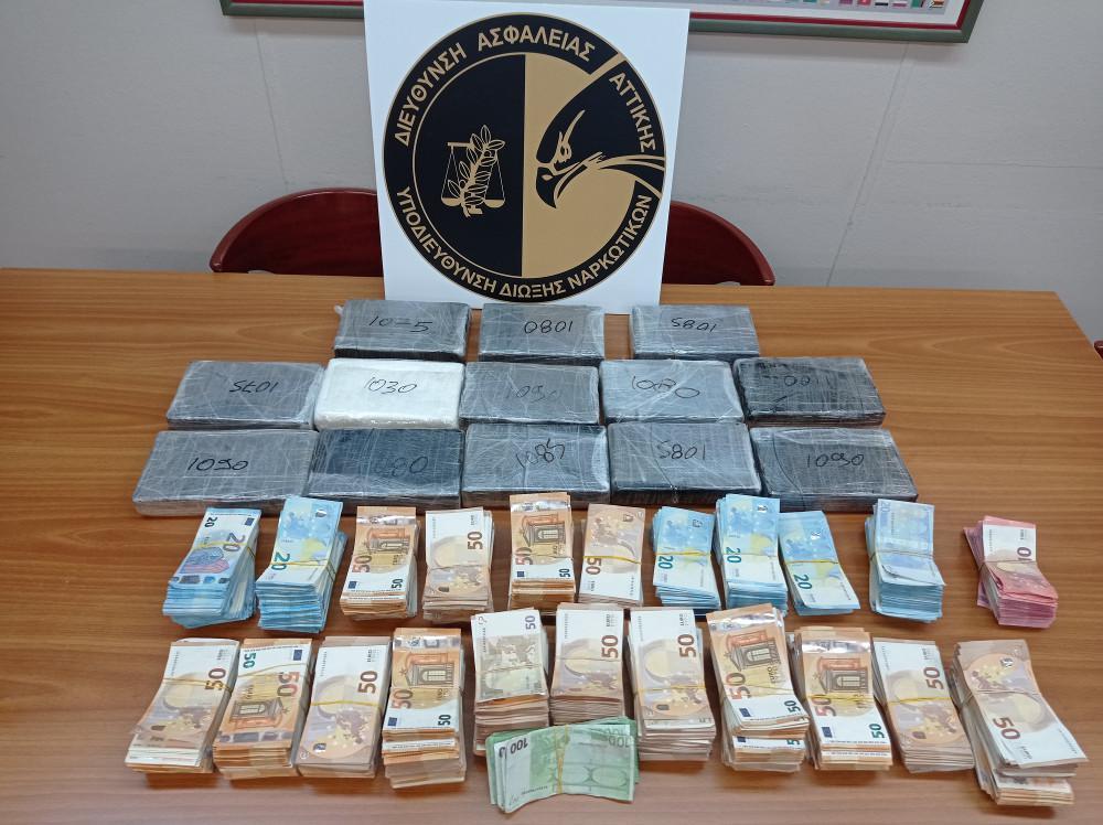 Κατά την έρευνα βρέθηκαν, επιμελώς κρυμμένα στον αποθηκευτικό χώρο του επικαθήμενου, 13 συσκευασίες με κοκαΐνη και μικροποσότητα ακατέργαστης κάνναβης. Επίσης, εντός του χώρου της καμπίνας του φορτηγού βρέθηκε επιμελώς κρυμμένο μεγάλο χρηματικό ποσό.