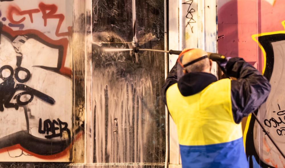 O καθαρισμός σε ρολά καταστημάτων έγινε σε συνεννόηση με τους ιδιοκτήτες, ενώ οι εργασίες πραγματοποιήθηκαν την νύχτα ώστε να μην εμποδίζεται η λειτουργία τους.