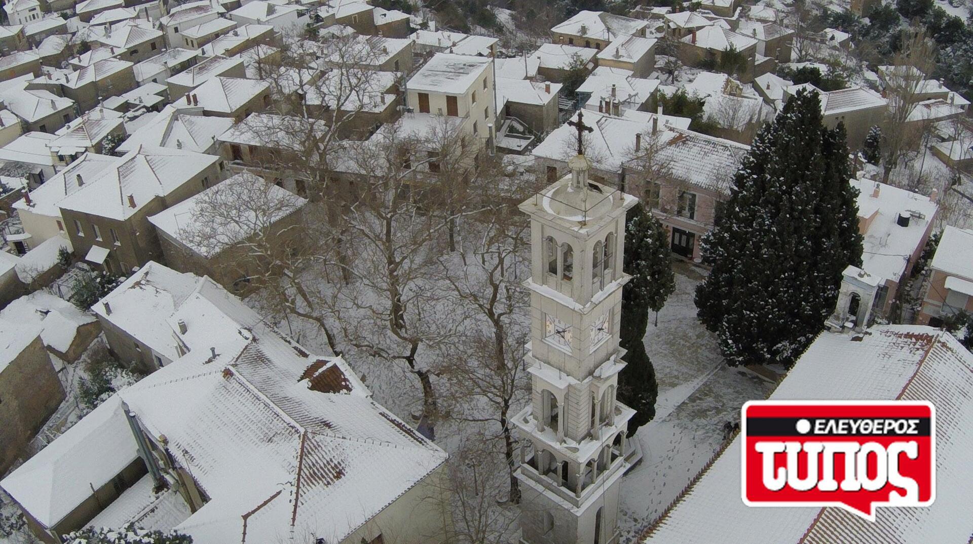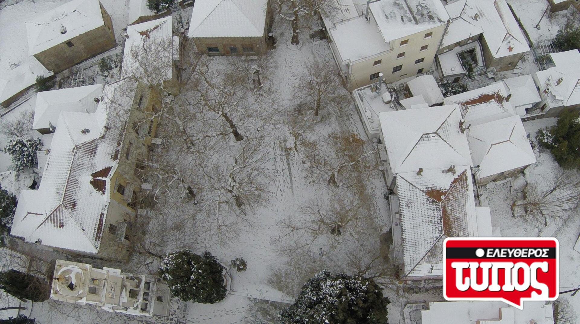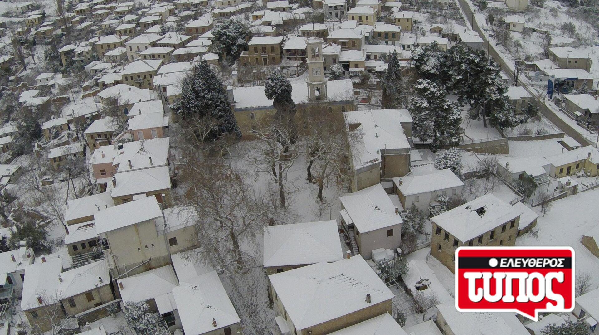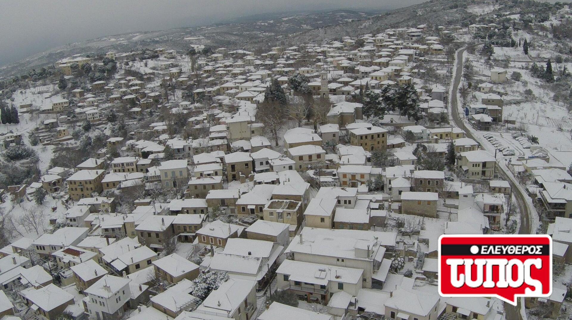 Οι αεροφωτογραφίες που θα δείτε είναι τραβηγμένες από τον Λαύκο Πηλίου με το χιόνι να έχει πραγματικά καλύψει τα πάντα και να δημιουργούν ένα πραγματικό όμορφο σκηνικό.