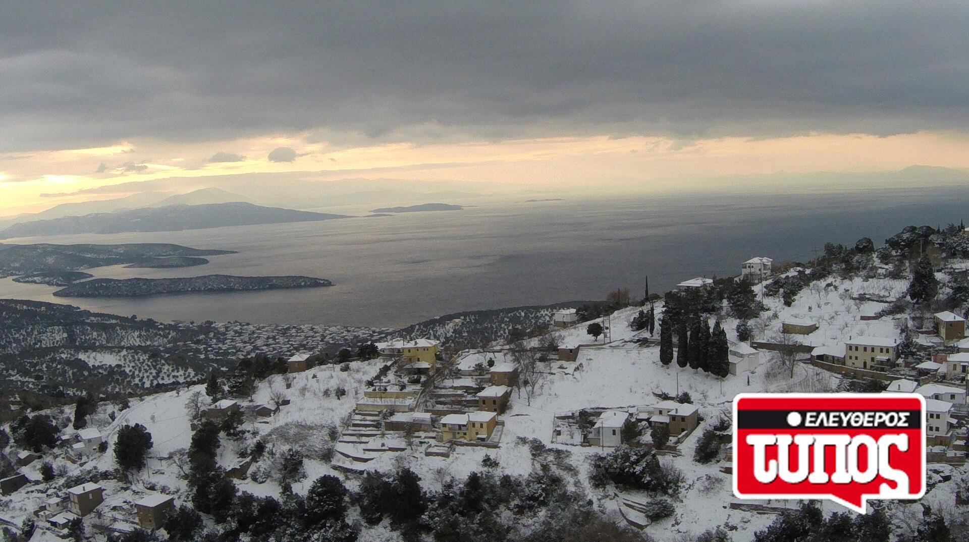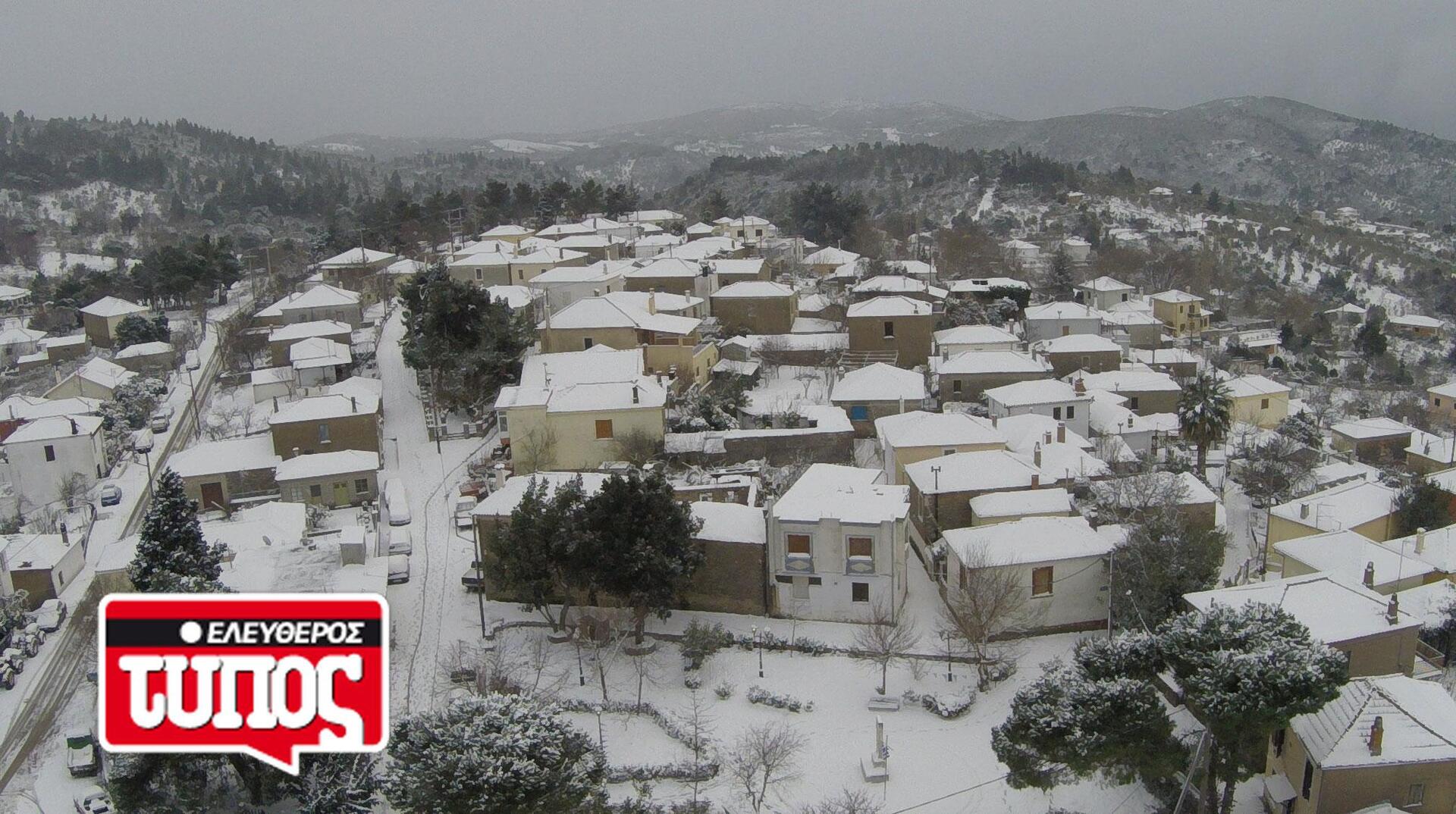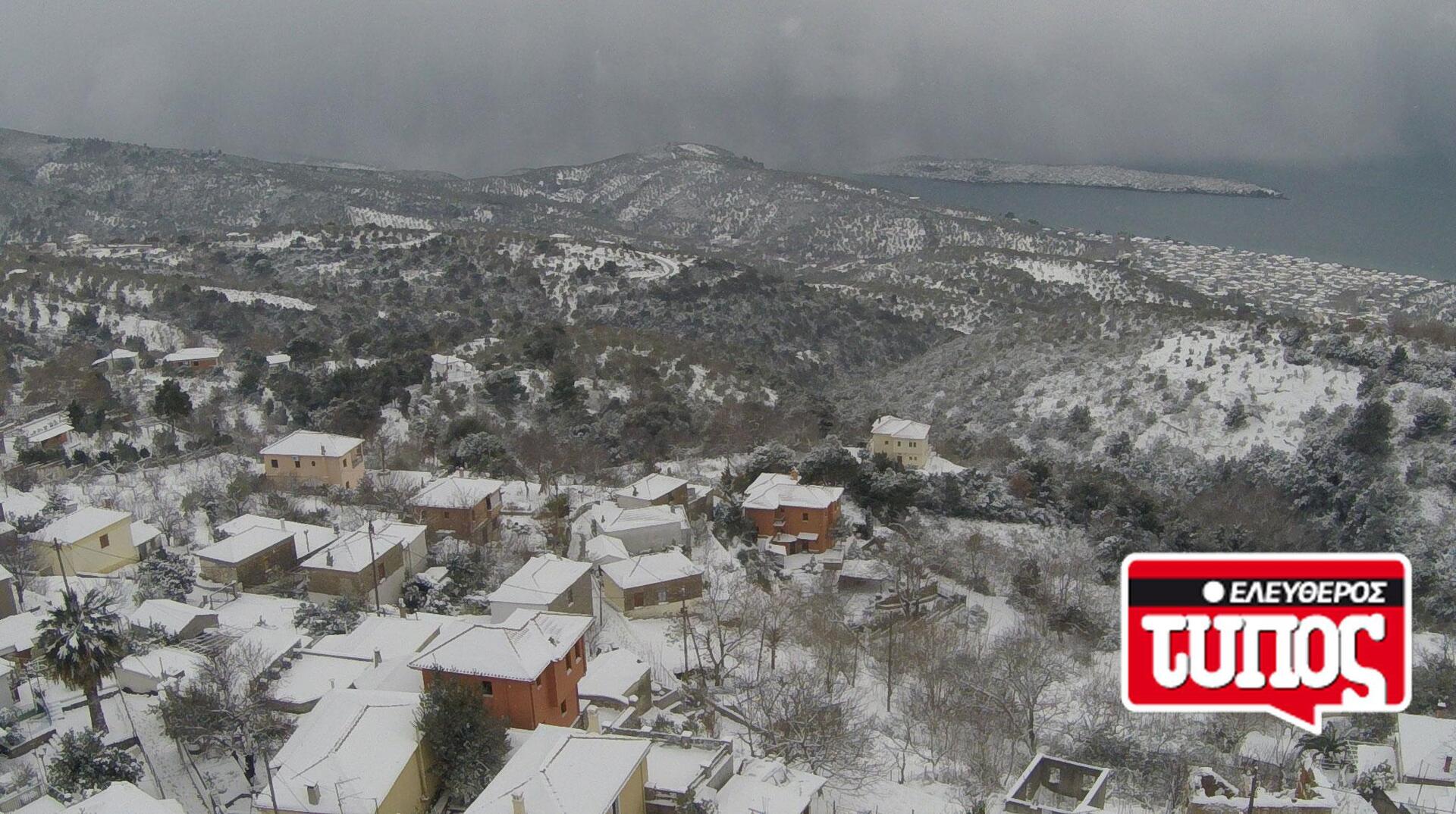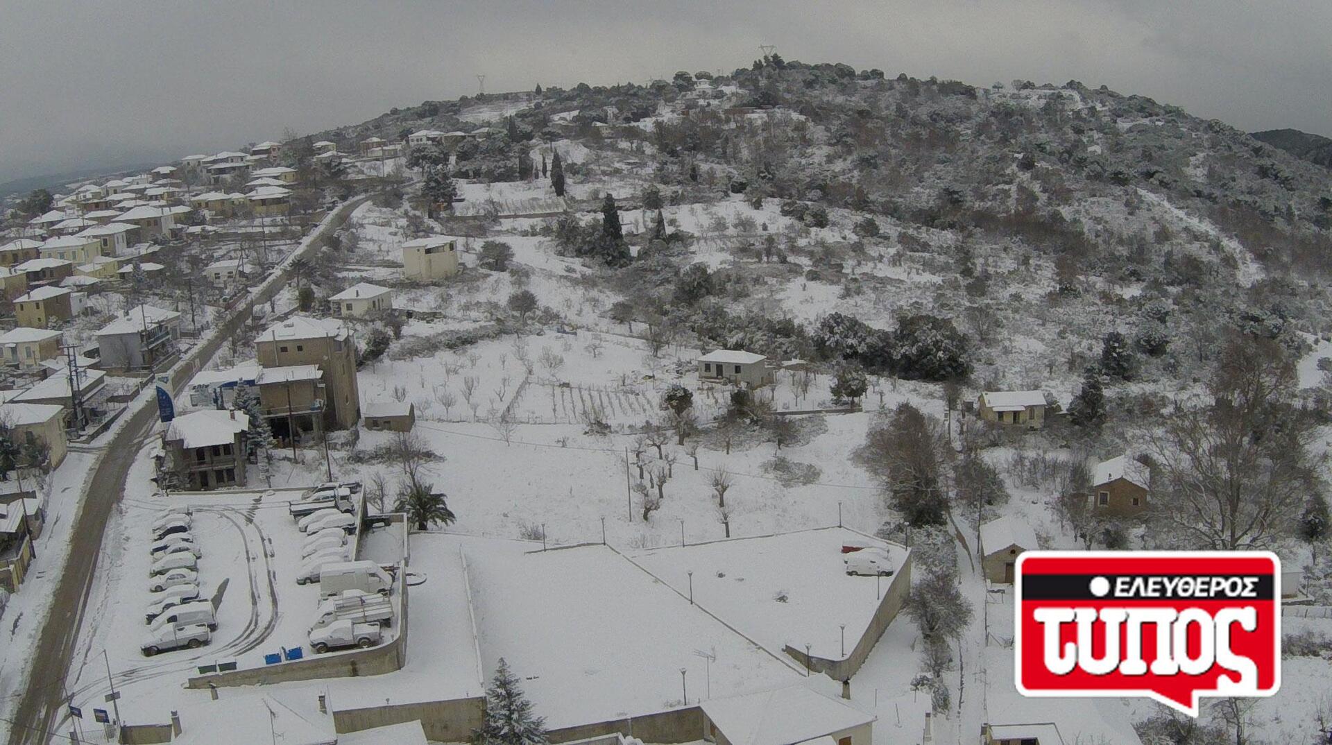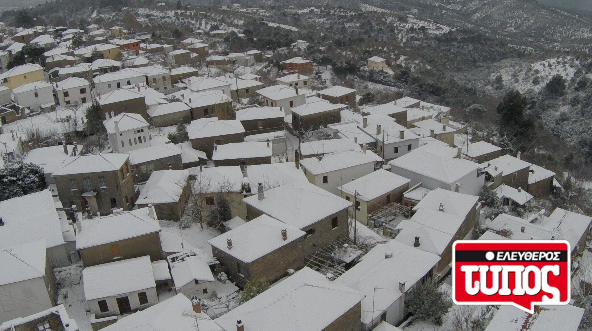 Οι αεροφωτογραφίες που θα δείτε είναι τραβηγμένες από τον Λαύκο Πηλίου με το χιόνι να έχει πραγματικά καλύψει τα πάντα και να δημιουργούν ένα πραγματικό όμορφο σκηνικό.