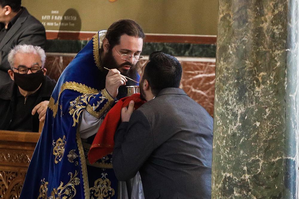 Επιπλέον, παρά τους αυστηρούς κανόνες λόγω του κορωνοϊού, στη Μητρόπολη Πειραιώς οι πιστοί έλαβαν τη Θεία Κοινωνία.