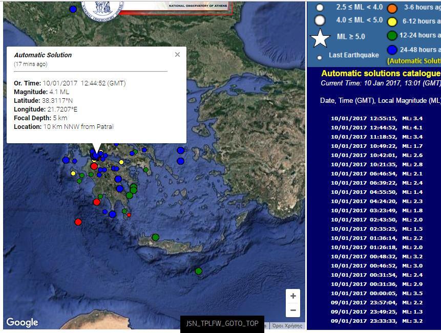 Η νέα δόνηση, μεγέθους 3,9 βαθμών της κλίμακας Ρίχτερ –σύμφωνα με την προκαταρκτική μέτρηση του Γεωδυναμικού Ινστιτούτου, είχε επίκεντρο περιοχή 13 χλμ δυτικά νοτιοδυτικά της Ναυπάκτου.