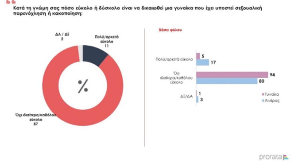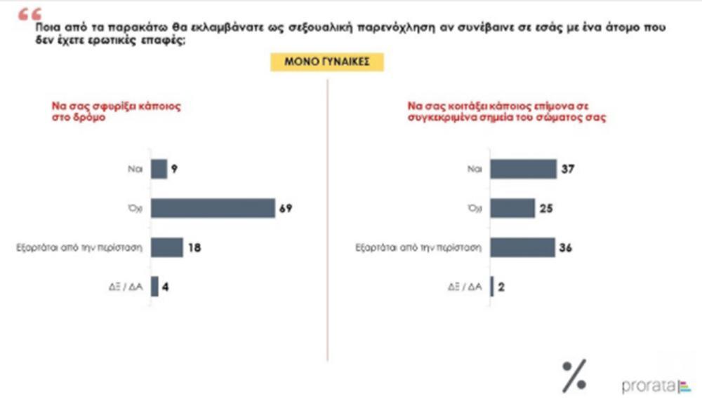 Έρευνα της PRORATA S.A, παρουσιάζει τις στάσεις και τις αντιλήψεις απέναντι στο μείζον κοινωνικό πρόβλημα της σεξουαλικής παρενόχλησης και κακοποίησης. Η έρευνα διεξήχθη το διάστημα μεταξύ 22 και 24 Ιανουαρίου σε πανελλαδικό δείγμα 1115 ατόμων.