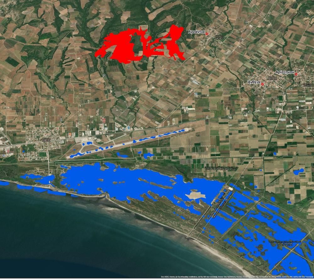 Συγκεκριμένα, η Ομάδα Ταχείας Χαρτογράφησης του Κέντρου Παρατήρησης της Γης και Δορυφορικής Τηλεπισκόπησης «BEYOND» του Εθνικού Αστεροσκοπείου Αθηνών συνέλεξε στα Copernicus Hubs, που λειτουργεί, εικόνες υψηλής χωρικής ανάλυσης των ευρωπαϊκών δορυφόρων Sentinels, παρέχοντας την πρώτη εκτίμηση των εκτάσεων που πλημμύρισαν στις 2 Φεβρουαρίου 2021 στην ελληνική επικράτεια της υδρολογικής λεκάνης του ποταμού Εβρου. «Η καμένη έκταση που απεικονίζεται στο χάρτη με κόκκινο εκτιμήθηκε από την υπηρεσία FireHub του “BEYOND” στα 870 στρέμματα (87 εκτάρια) και ήταν κυρίως σκληρόφυλλη βλάστηση (60%). Ως αποτέλεσμα της πυρκαγιάς αυτής αυξήθηκε ο συντελεστής απορροής και έγινε ακόμα πιο ευάλωτη στις πλημμύρες η γύρω περιοχή στα κατάντη», είπε στον «Ε.Τ.» η ερευνήτρια του Κέντρου, Αλεξία Τσούνη.