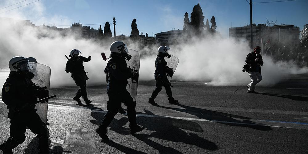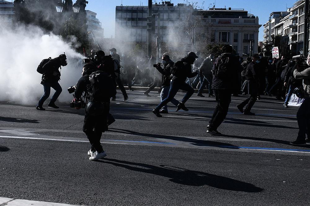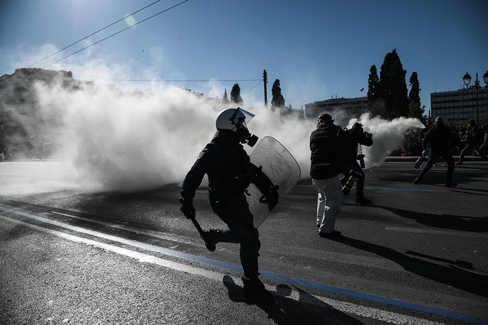 Δυνάμεις τις αστυνομίας τούς απώθησαν κάνοντας περιορισμένη χρήση χημικών και αποκλείοντας στενά για να τούς περιορίσουν και να προχωρήσουν σε προσαγωγές.