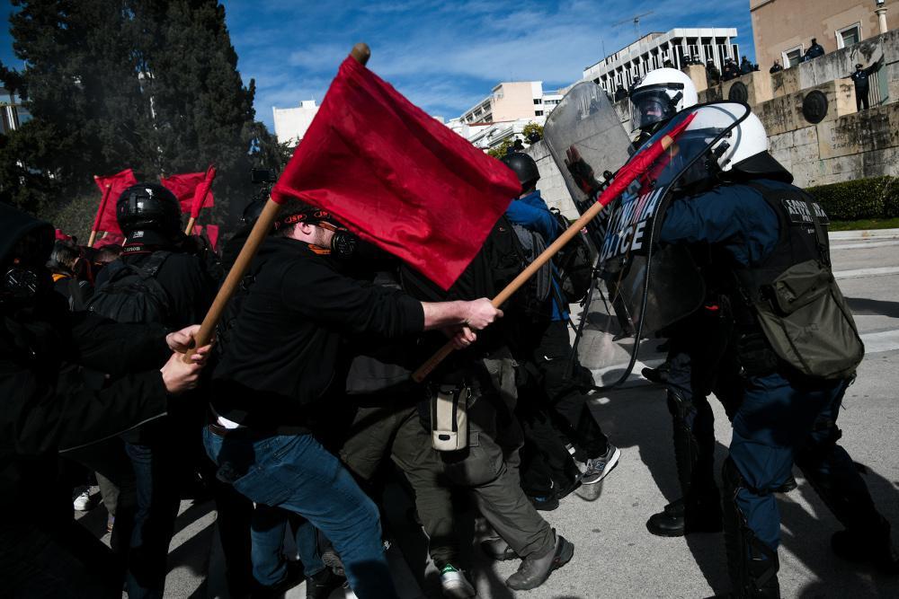 Οι συγκεντρωμένοι έφτασαν στη Βουλή, όπου τα πράγματα ξέφυγαν για λίγα λεπτά.