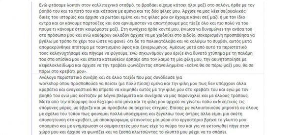 Μάλιστα όπως σημειώνουν και οι δύο φοιτήτριες, όταν ο συγκεκριμένος καθηγητής δεν κατάφερε να πετύχει τους στόχους του, μετέτρεψε το μάθημα σε κόλαση για αυτές, με συνεχείς προσβολές, σεξουαλικά υπονοούμενα και μειωτικούς χαρακτηρισμούς.