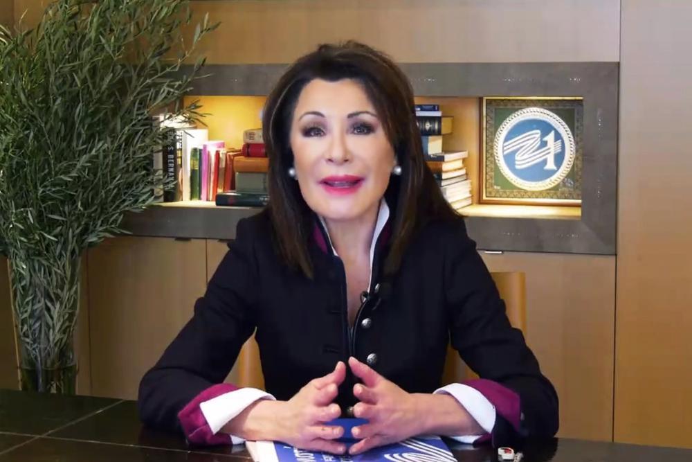 Οντας η ίδια μέλος της «Leadership 100», η κυρία Αγγελοπούλου απέδωσε τα εύσημα στην οργάνωση και στους ιδρυτές της, για το έργο που προσφέρουν. Ιδιαίτερη αναφορά έκανε στον μακαριστό Αρχιεπίσκοπο Ιάκωβο, τον άνθρωπο που πρώτος οραματίστηκε αυτή την πρωτοπόρα πρωτοβουλία, που στα 37 χρόνια της δράσης της απέκτησε πάνω από 1.100 μέλη και έδωσε περισσότερα από 60 εκατομμύρια δολάρια σε υποτροφίες. Το έργο αυτό συνεχίζει σήμερα ο Αρχιεπίσκοπος Αμερικής Ελπιδοφόρος και το Διοικητικό Συμβούλιο της «Leadership 100».