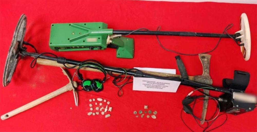 Συγκεκριμένα κατασχέθηκαν ένα χάλκινο νόμισμα ελληνιστικών χρόνων, ένα μολύβδινο βλήμα σφενδόνης με γράμματα, ένας μολύβδινος πεσσός, οκτώ μολύβδινα σφαιροειδή βλήματα, πέντε μολύβδινα αντικείμενα, δύο χάλκινα αντικείμενα, εννέα χάλκινα νομίσματα, εκ των οποίων πέντε ακέραια και τέσσερα αποσπασματικά ελληνιστικών, ρωμαϊκών και οθωμανικών χρόνων, όπως επίσης μία μολύβδινη πυραμιδόσχημη αγνίθα. Επίσης κατασχέθηκαν δύο ανιχνευτές μετάλλων και ισάριθμα σκαπτικά εργαλεία και ακουστικά, ως μέσα διενέργειας ανασκαφικών δραστηριοτήτων.