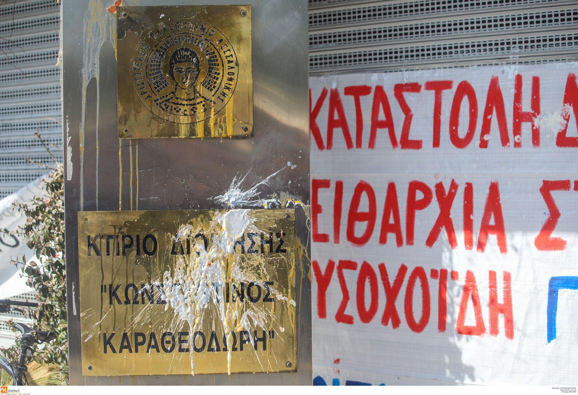 Μάλιστα, ορισμένοι από αυτούς επιδεικτικά πέταξαν αβγά και γιαούρτια στην ταμπέλα εισόδου του κτιρίου, όπου αναγράφεται το όνομα του παγκοσμίως διακεκριμένου μαθηματικού Κωνσταντίνου Καραθεοδωρή, ο οποίος ήταν ένας από τους πρωτεργάτες της σύστασης και ενίσχυσης του ΑΠΘ, δηλαδή του ιδρύματος στο οποίο φοιτούν οι συγκεκριμένοι νεαροί.