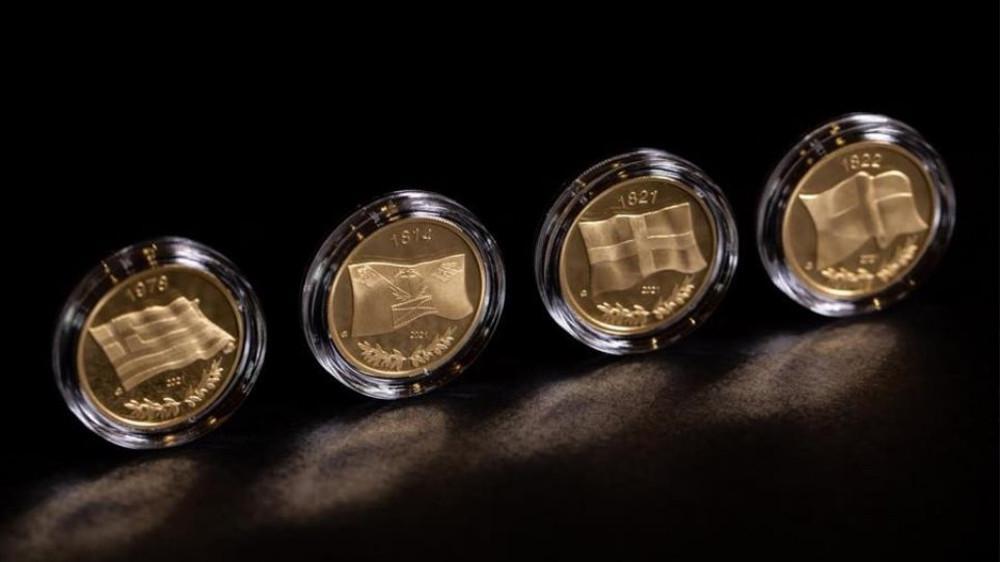 Συγκεκριμένα, στον εσωτερικό κύκλο του κέρματος (πυρήνα) θα απεικονίζεται στο κέντρο η ελληνική σημαία περιβαλλόμενη από κλάδους δάφνης.