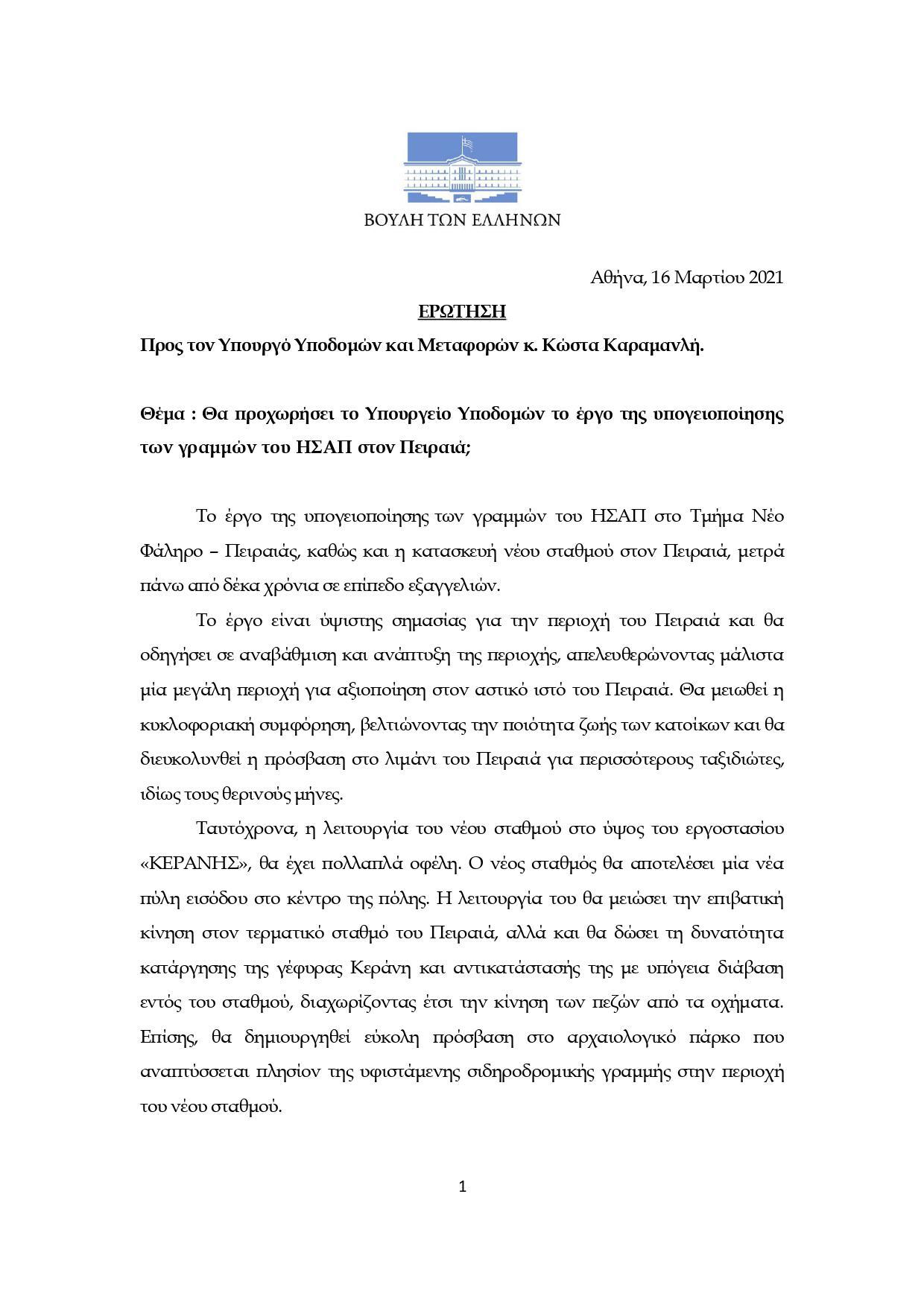 Δείτε αναλυτικά την ερώτηση των βουλευτών του Κινήματος Αλλαγής σήμερα 16/03/2021 στη Βουλή των Ελλήνων: