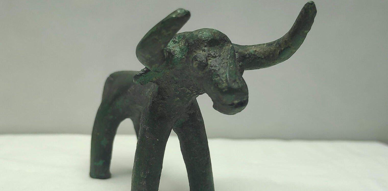Σύμφωνα με την πρώτη εξέταση, το καλοφτιαγμένο και άριστης διατήρησης ειδώλιο του χάλκινου ταύρου απετέλεσε ένα από τα χιλιάδες αναθήματα που αφιερώθηκαν στο πανίσχυρο Δία στο μεγάλο του ιερό της Ολυμπίας κατά τη γεωμετρική εποχή (1050 – 700 π.Χ.).
