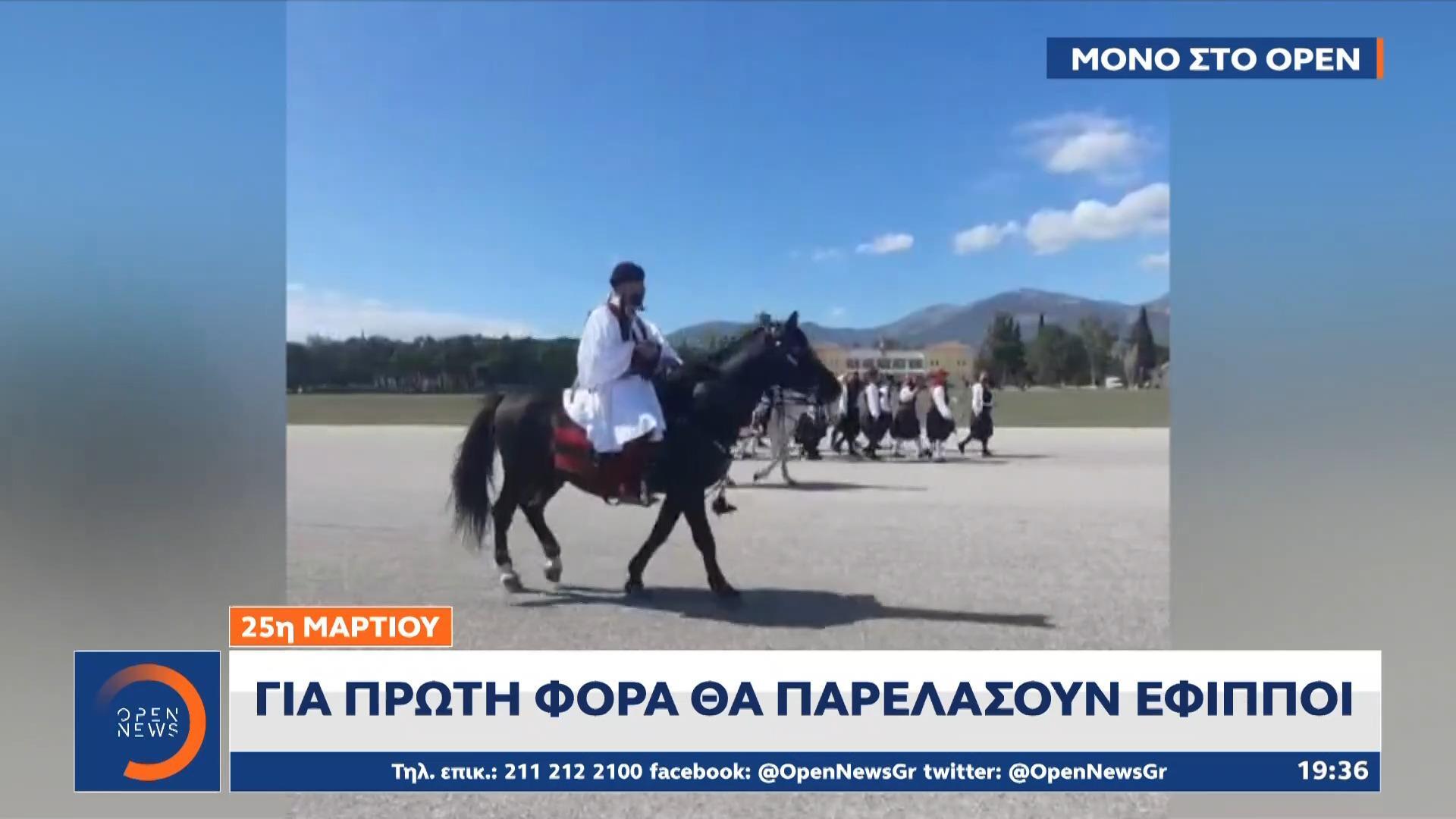 Τους έφιππους, μάλιστα, πλαισιώνουν ομάδες ατόμων που φορούν παραδοσιακές στολές από τον Πόντο και την Θράκη μέχρι την Κρήτη, ενώ στα πλάνα διακρίνεται και ένα πεζοπόρο τμήμα που αποτελεί την αναβίωση του ιστορικού Ιερού Λόχου του Αλέξανδρου Υψηλάντη.