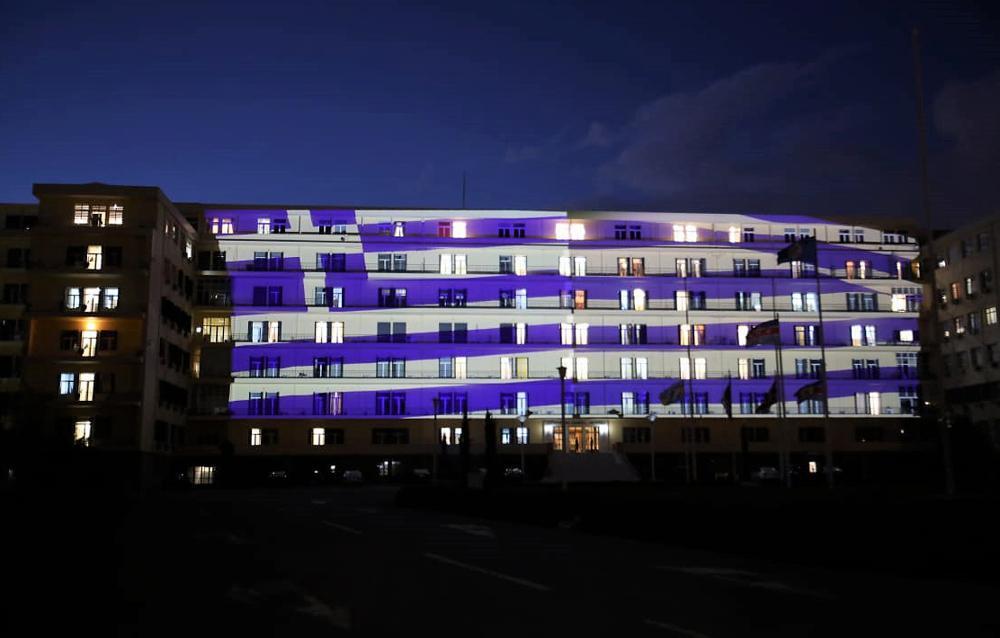 Το βράδυ της Τετάρτης δεκάδες κτίρια σε όλη την Ελλάδα βάφτηκαν στα χρώματα της γαλανόλευκης.