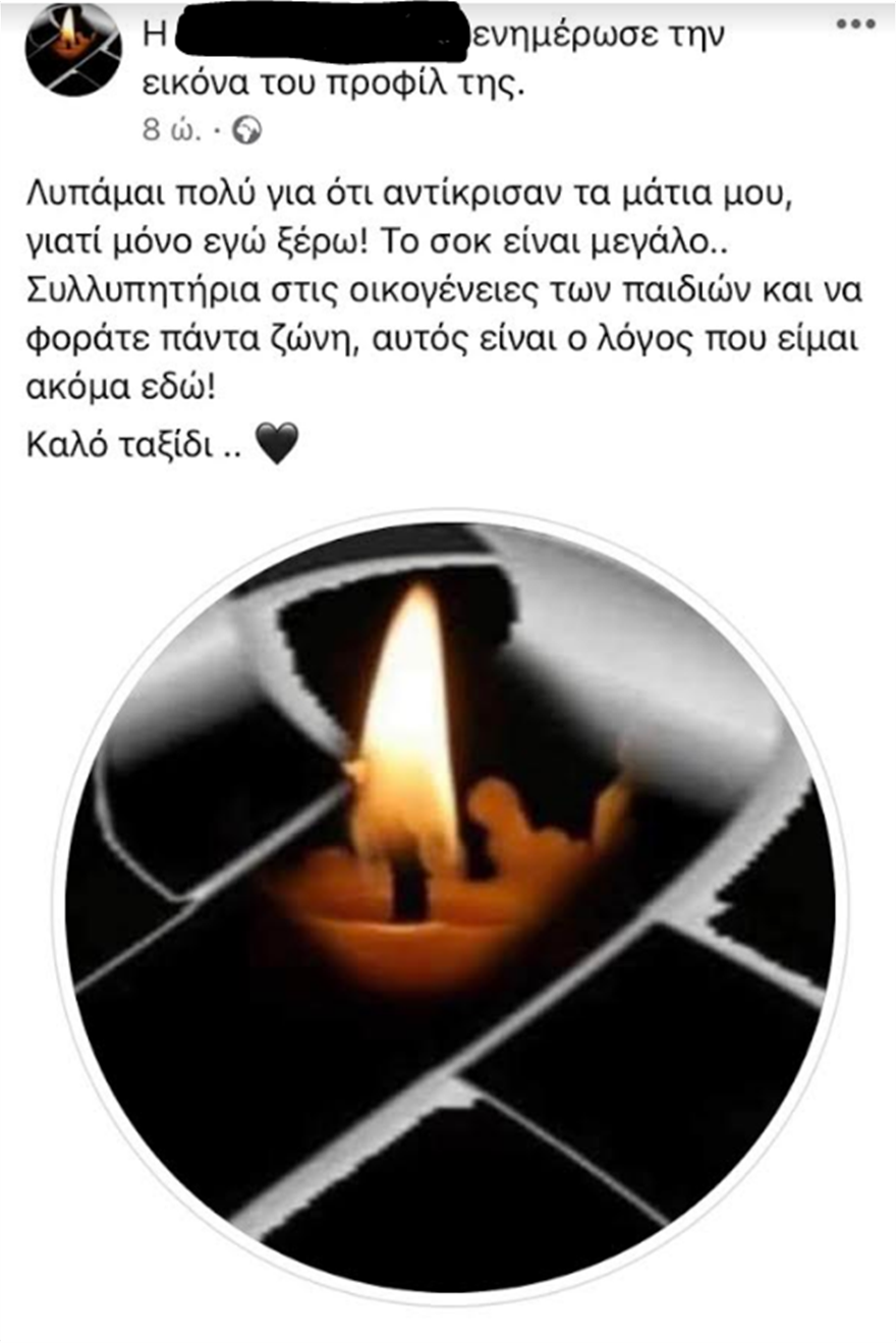 Η 20χρονη επιζήσασα για να περιγράψει τα όσα έζησε μέσα από τα κοινωνικά της δίκτυα, συγκλονίζουν: «Λυπάμαι πολύ για ότ,ι αντίκρισαν τα μάτια μου, γιατί μόνο εγώ ξέρω. Το σοκ είναι μεγάλο. Συλλυπητήρια στις οικογένειες των παιδιών και να φοράτε πάντα ζώνη, αυτός είναι ο λόγος που είμαι ακόμα εδώ. Καλό ταξίδι».