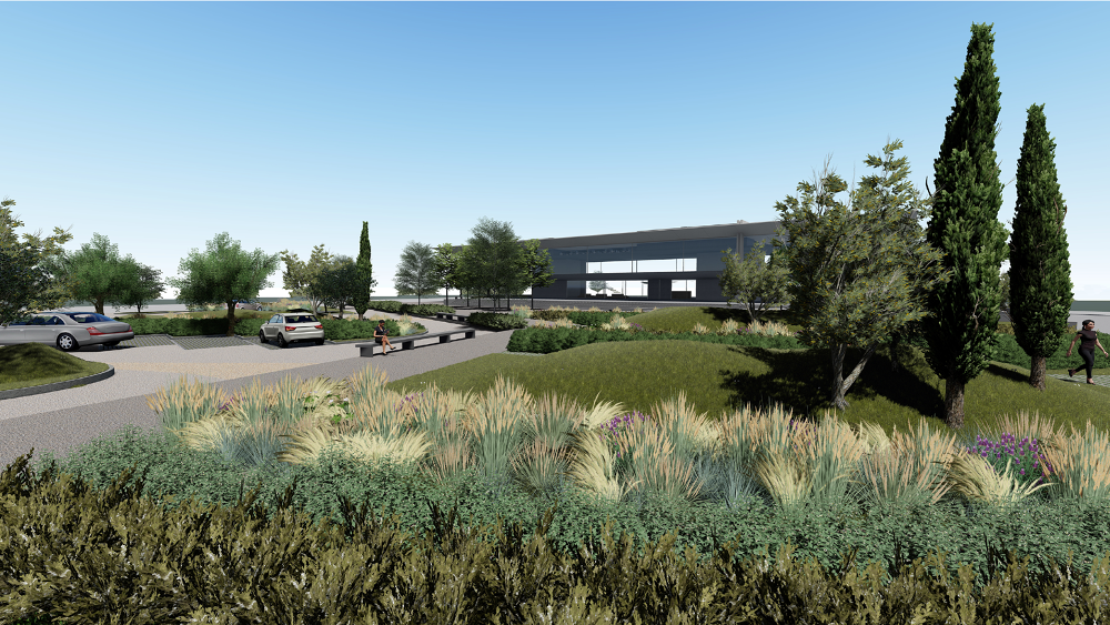 Στον περιβάλλοντα χώρο, η επιλογή των υλικών και των φυτεύσεων γίνεται με στόχο το έργο να αποκτήσει χαρακτήρα φιλικό προς το φυσικό περιβάλλον και να μειωθεί στο ελάχιστο το οικολογικό του αποτύπωμα. Αντίστοιχα, η παλέτα φύτευσης αποτελείται από είδη με χαμηλές υδατικές ανάγκες, δοκιμασμένης αντοχής στο μικροκλίμα της περιοχής μελέτης και τις συνθήκες γειτνίασης με τη θάλασσα.