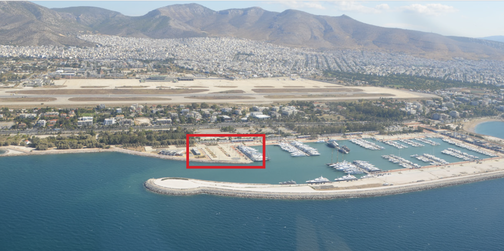 Το Hellinikon Sales Center, θα τοποθετηθεί μεταξύ του οικιστικού Πύργου Marina Residential Tower (στα βόρεια) και του Εμπορικού Κέντρου Marina Mall (στα νότια), ενώ ένας νοητός άξονας θα το συνδέει με τον Ανατολικό Αεροσταθμό (στα ανατολικά) του Φινλανδοαμερικανού αρχιτέκτονα E. Saarinen, κτίριο κηρυγμένο ως νεότερο μνημείο.