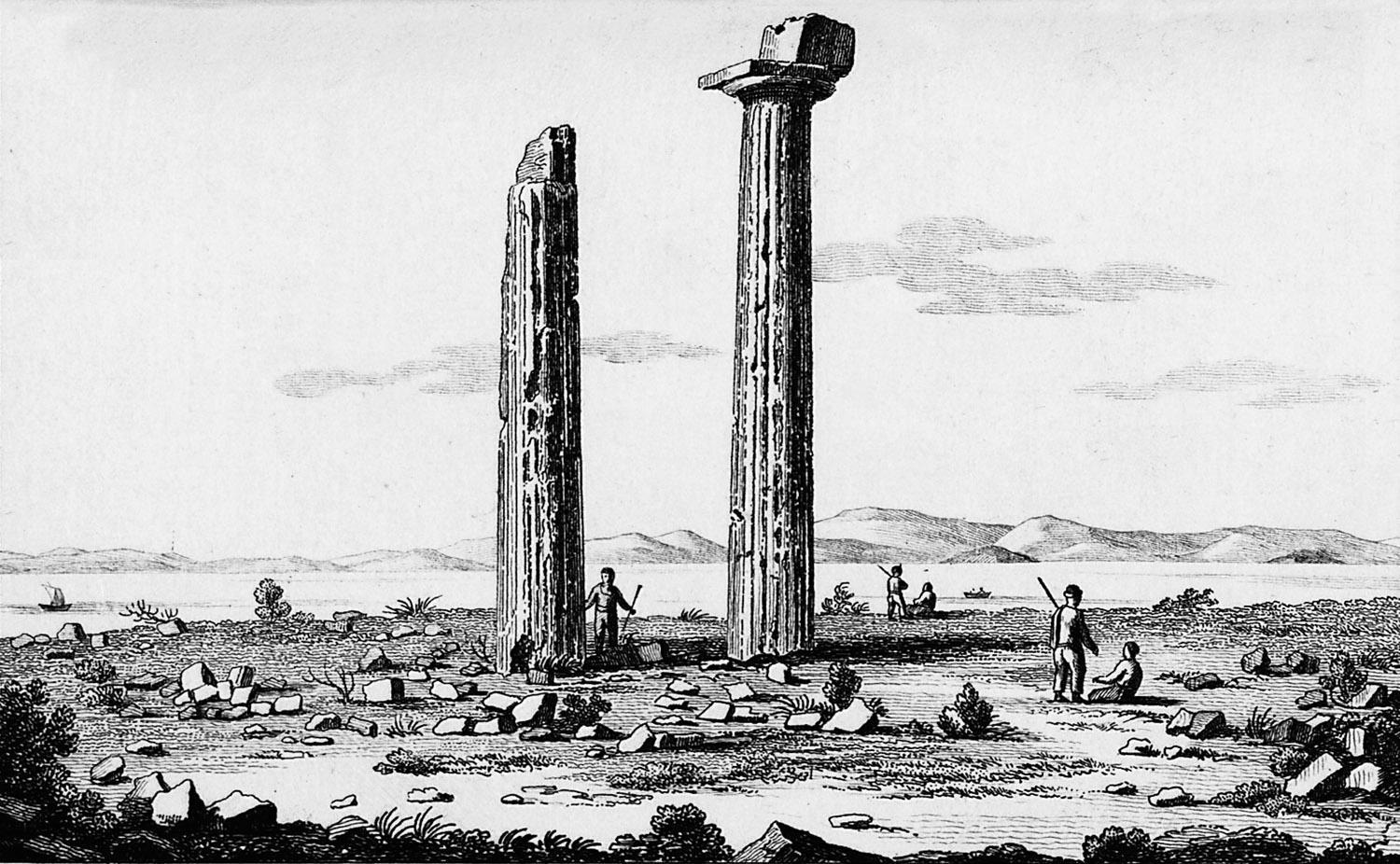 Ο Ναός του Απόλλωνα στην Κολώνα, στην Αίγινα, 1820. Πρωτότυπος τίτλος «Tempio di Venere in Egina». Συλλογή: Γεννάδειος Βιβλιοθήκη – Αμερικανική Σχολή Κλασικών Σπουδών στην Αθήνα.
