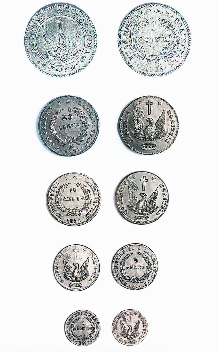Νομίσματα της καποδιστριακής περιόδου. Επιγραφικό και Νομισματικό Μουσείο, Τράπεζα της Ελλάδος – Νομισματική Συλλογή, Ιδιωτική Συλλογή.