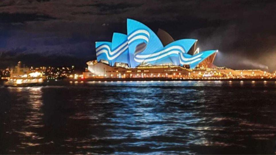 Στην ίδια ανάρτηση, το υπουργείο Εξωτερικών παραθέτει στιγμιότυπα από τη φωταγώγηση εμβληματικών κτιρίων και μνημείων σε διάφορες χώρες.