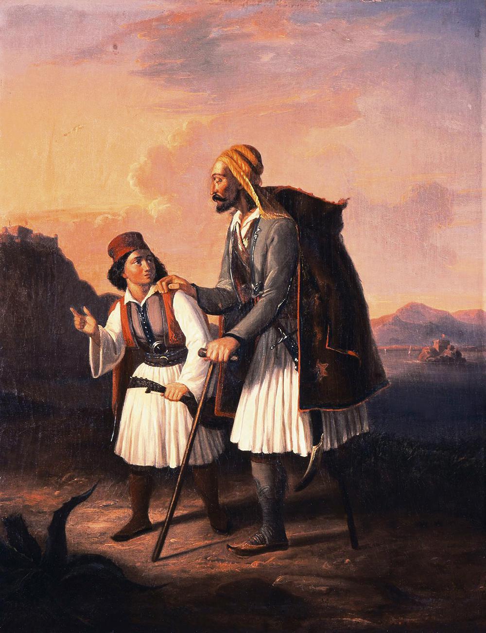 Αναθέτοντας, στα 1836-1839, την απεικόνιση των σπουδαιότερων γεγονότων του αγώνα στον Παναγιώτη Ζωγράφο, ο Ιωάννης Μακρυγιάννης θέλησε να τιμήσει τους εικονιζόμενους και να τους συστήσει στους κυβερνώντες, ώστε να λάβουν τη δέουσα ανταμοιβή. Οι υδατογραφίες του Ludwig Köllnberger με τους πεζικάριους των ελαφρών ταγμάτων, τους εθνοφύλακες, τους χωροφύλακες και τους ναύτες παρουσιάζουν τις κύριες επαγγελματικές διεξόδους των μάχιμων πολεμιστών», είπε. Ανήμπορος να αποκατασταθεί επαγγελματικά, ο «Ανάπηρος του Αγώνα» (1840) του Θεοδώρου Βρυζάκη έχει μόνες βεβαιότητες το ηρωικό παρελθόν, τη χωλότητα, την τυφλότητα και τον ανήλικο συνοδό. Η σιγουριά του ζευγαριού στο μεταγενέστερο έργο του ζωγράφου «Τυφλός Τραυματίας» (1850) υποδηλώνει την κρατική μέριμνα, την οποίαν διασαλπίζουν και οι τοιχογραφίες των Ανακτόρων (1840-1843).
