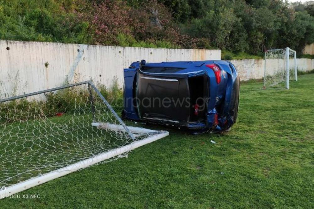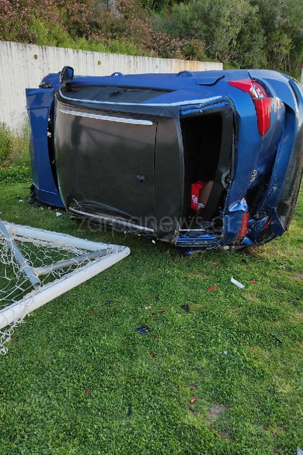 Το συμβάν έλαβε χώρα την Κυριακή. Όπως φαίνεται και στις φωτογραφίες του zarpanews.gr, το αυτοκίνητο έχει ντεραπάρει, ενώ παραμένει άγνωστο πως ακριβώς συνέβη το πρωτοφανές περιστατικό.