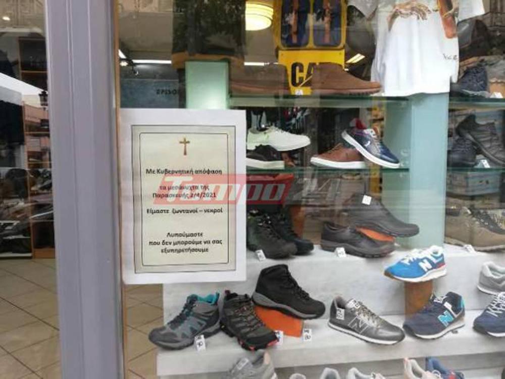 Σε μία συμβολική κίνηση διαμαρτυρίας προχώρησαν και οι έμποροι της Πάτρας, με αφορμή την απόφαση για αναστολή επαναλειτουργίας του λιανεμπορίου στην πόλη.
