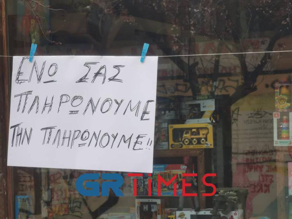 Στην περιοχή της Πολίχνης οι καταστηματάρχες βρέθηκαν από νωρίς το πρωί στα μαγαζιά τους και στις 9 το πρωί άνοιξαν τα φώτα, όπως θα ήταν κανονικά αν βρισκόντουσαν σε λειτουργία. Επίσης, όπως μπορείτε να δείτε στο βίντεο και τις φωτογραφίες του GRTimes.gr, κρέμασαν πινακίδες κατά μήκος του δρόμου αλλά και μαύρο πανί.