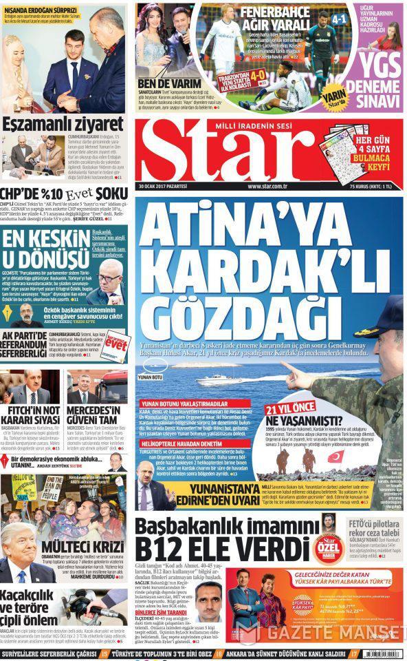 Η εφημερίδα Star να αναφέρει : Μήνυμα στην Αθήνα με τα Καρντάκ (Ύμια) και συνεχίζει: «Μετά την απόφαση της Ελλάδος για την μη έκδοση των 8 πραξικοπηματιών ο Ακάρ επισκέφθηκε τα Καρντακ»