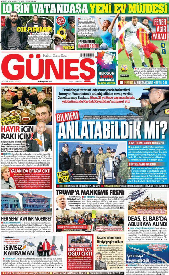 Στο ίδιο μήκος κινείται και η εφημερίδα GÜNEŞ με τ τίτλο: Μπορέσαμε να σας το εξηγήσουμε και αναφέρει: «Στην Ελλάδα που δεν επιστρέφει τους 8 τρομοκράτες δόθηκε μήνυμα στη γλώσσα που καταλαβαίνει».
