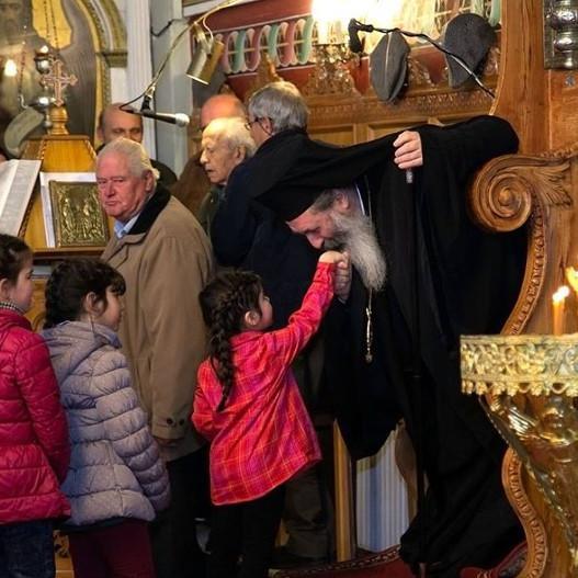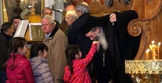 H φωτογραφία που δημοσιοποιεί το e-kefalonia.net είναι από τον εσπερινό στον Ιερό Ναό Ταξιαρχών στα Βαλσαμάτα Κεφαλλονιά. Εκεί, μεταξύ των πιστών που θέλησαν να πάρουν την ευχή και ευλογία του οικείου μητροπολίτη του νησιού, βρέθηκαν και μερικά κοριτσάκια.