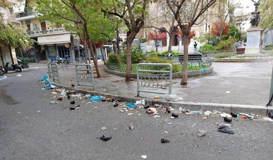 Όπως αναφέρει σχετική ανακοίνωση του Δήμου, τα απορρίμματα (μπουκάλια, πλαστικά ποτήρια, πακέτα τσιγάρων, χαρτιά και διάφορες συσκευασίες) γέμισαν 50 μεγάλες σακούλες σκουπιδιών, ενώ ακολούθησε η σάρωση και απολύμανση της πλατείας, των γύρω δρόμων και των πεζοδρομίων.