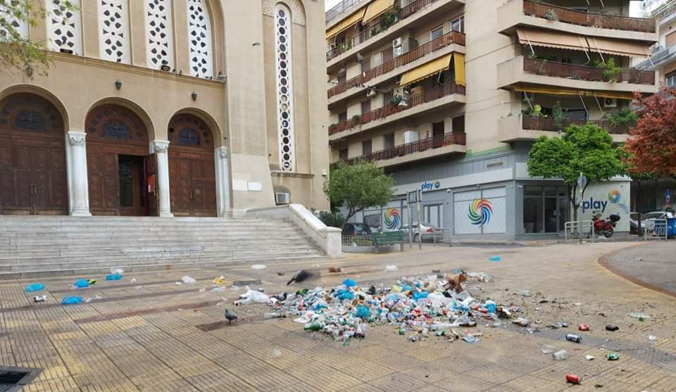 «Σκουπιδότοπος» η πλατεία Γεωργίου – Μάζεψαν 50 σακούλες τα συνεργεία του δήμου Αθηναίων