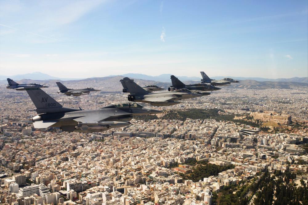 Η πολυεθνική διακλαδική άσκηση «Ηνίοχος 21» ολοκληρώθηκε, χθες, με την τιμητική διέλευση σχηματισμού 16 μαχητικών αεροσκαφών της Ελλάδας, της Γαλλίας, των Ηνωμένων Αραβικών Εμιράτων, των Ηνωμένων Πολιτειών της Αμερικής, της Ισπανίας, του Ισραήλ, καθώς και ενός αεροσκάφους ναυτικών επιχειρήσεων P-3B του Πολεμικού Ναυτικού, πάνω από τον Ιερό Βράχο της Ακρόπολης.